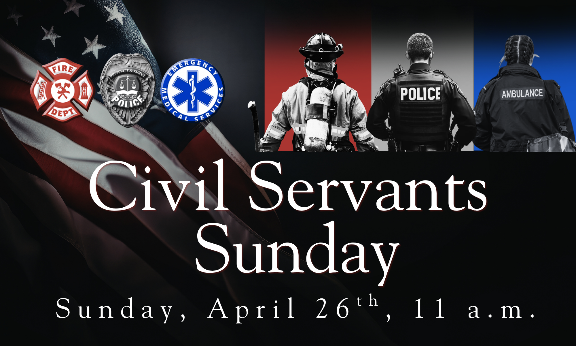 Join us Sunday, April 26th for Civil Servants Sunday, as we show our appreciation to those who serve our community.